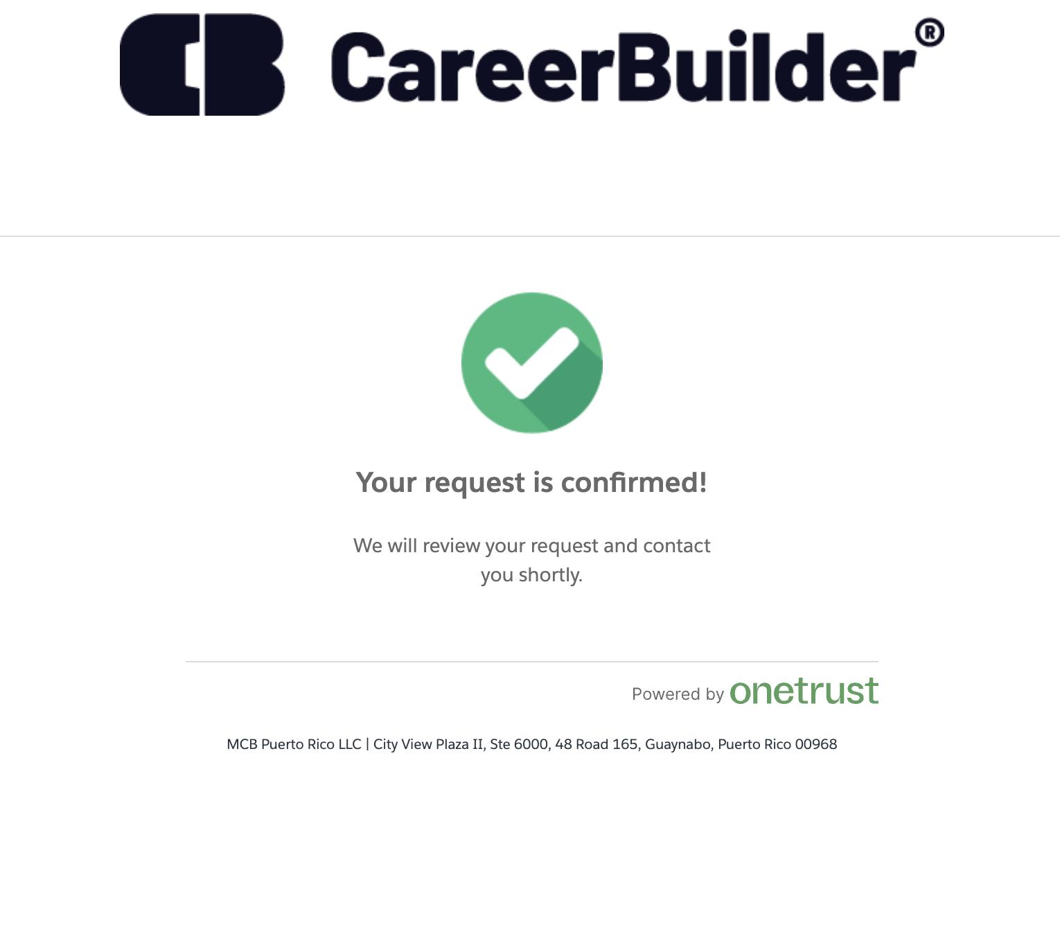Step 4: Then, you’re done for now. Next, Wait for confirmation. CareerBuilder will begin processing your request and will notify you once your data has been removed.
