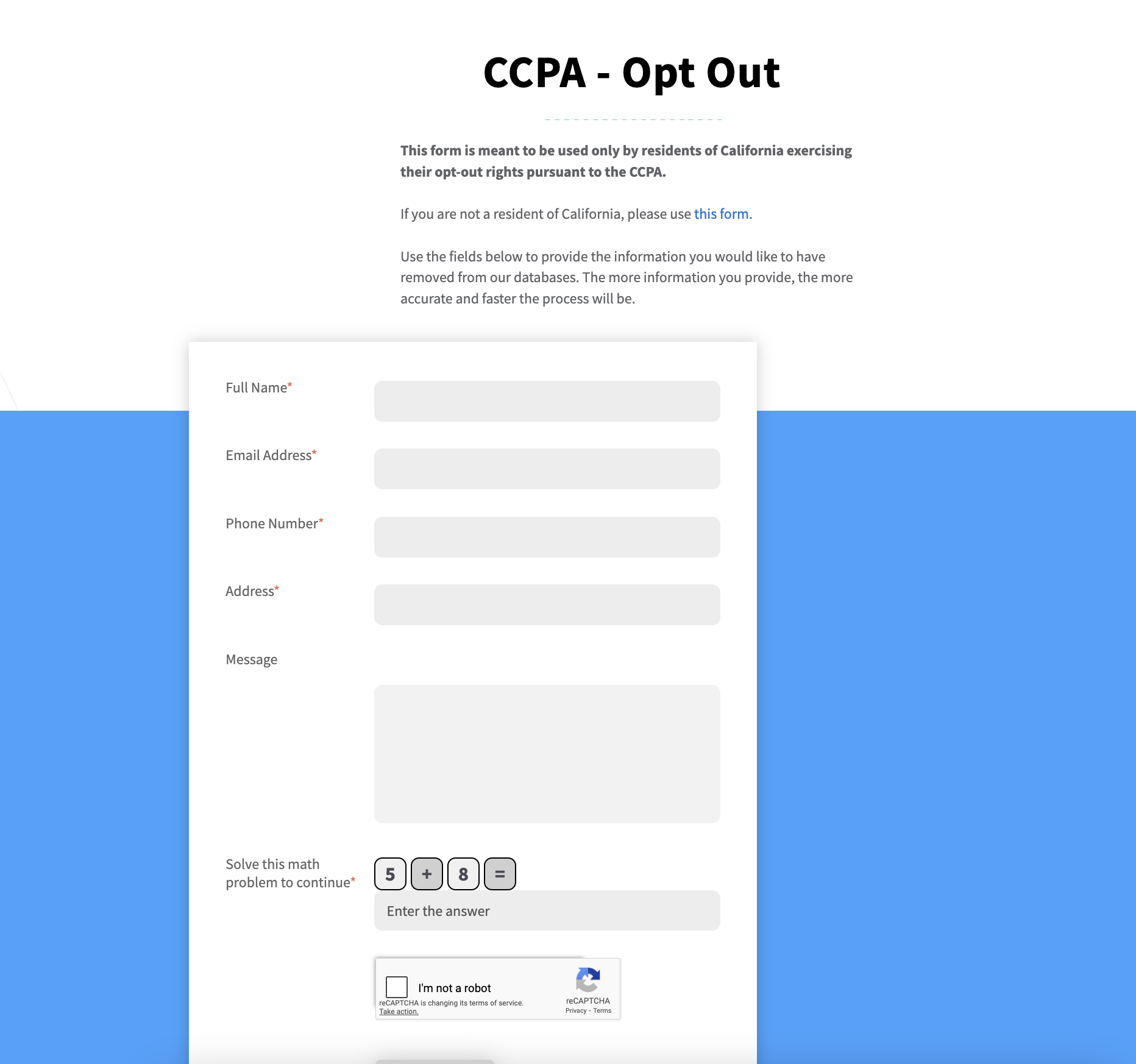 Step 4: Fill out their opt out form with all of your information. Use a valid email address (not a fake one!) as this is what will be used to look up your profile.