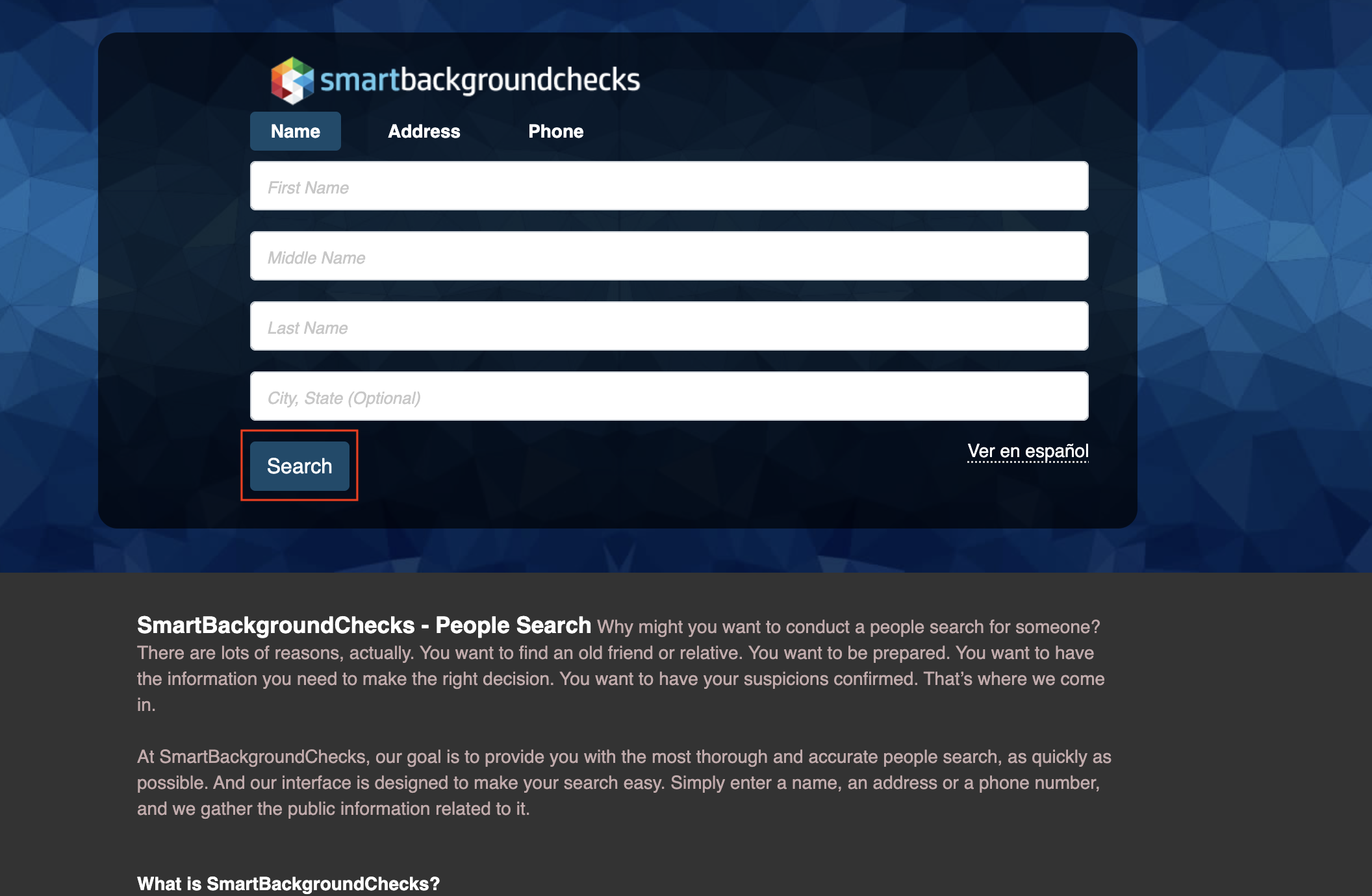 Step 1: First, navigate to smartbackgroundchecks.com and initiate a search with your personal information.