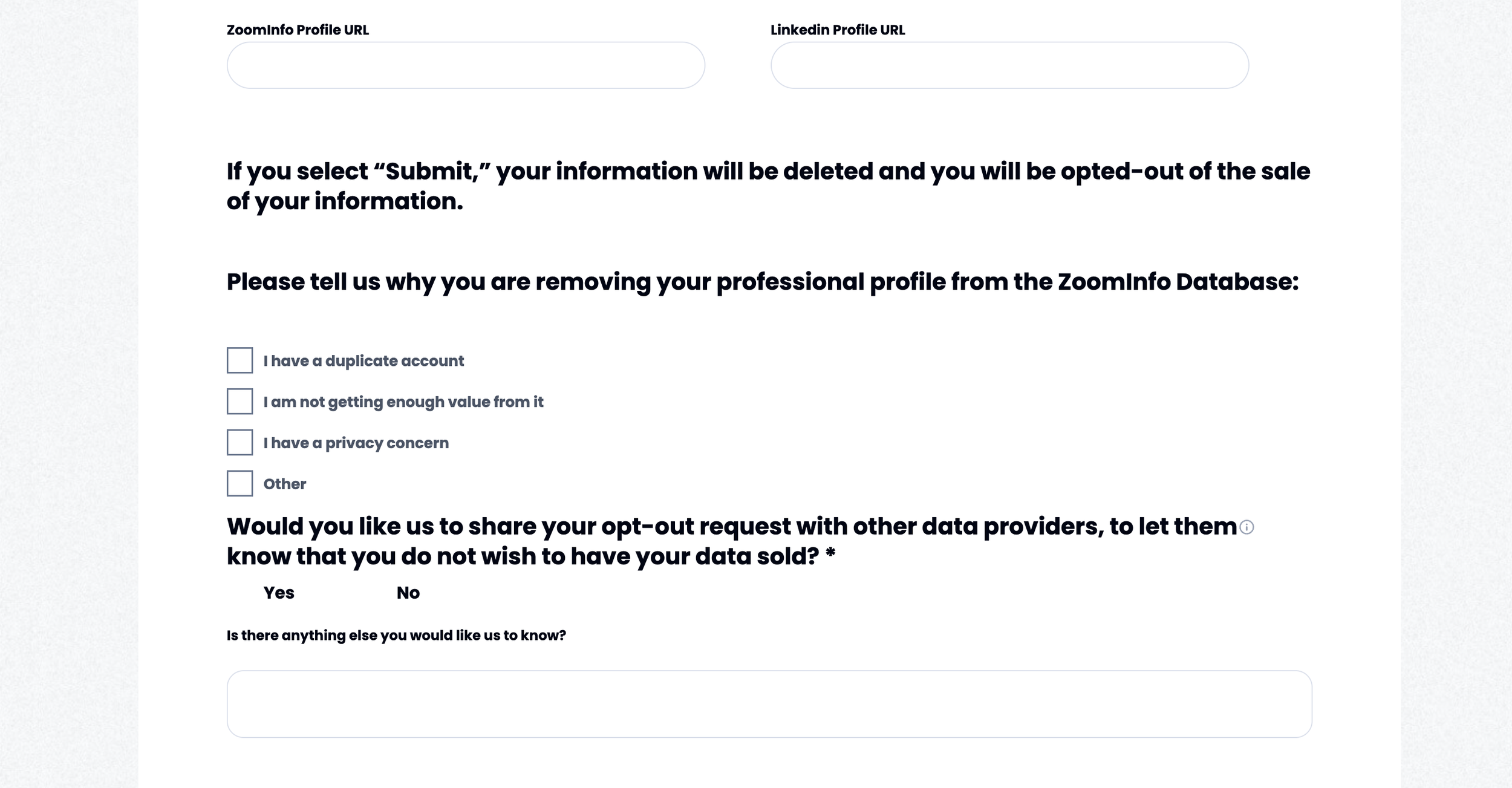 While the platform is useful for sales and recruiting, many people are uncomfortable with having their professional details exposed online. Opting out ensures your information is suppressed and no longer displayed in public searches or accessible through their paid directory.